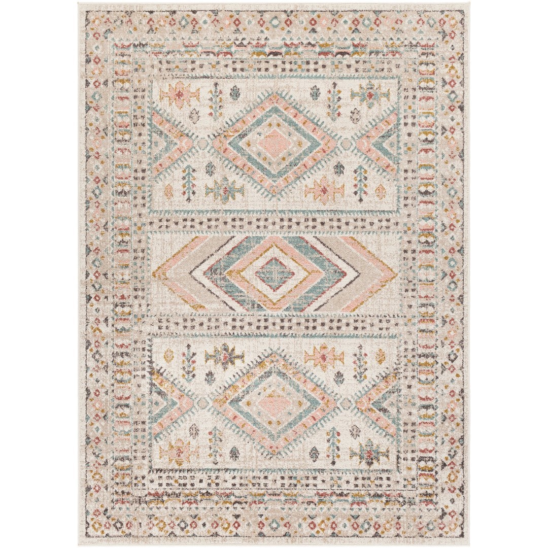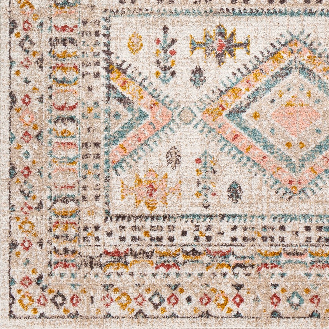 ETNICZNY PASTELOWY DYWANIK W BOHO SKANDI do salonu biura kremowy pomarańczowy SURYA DUBLIN 120×170 cm