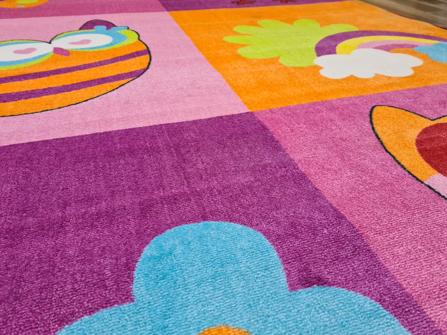 Urocze wzornictwo, delikatne kolory i miękkość w dotyku: ten dywan dla dzieci zamienia pokój dziecięcy w ulubiony plac zabaw najmłodszych. Uroczy motyw wyróżnia się na różow0-fioletowym tle i zachęca do marzeń, zabawy i wypoczynku w pokoju dziecięcym. Idealnie dobrane kolory emanują spokojem i bezpieczeństwem i można je łączyć z każdym wnętrzem.