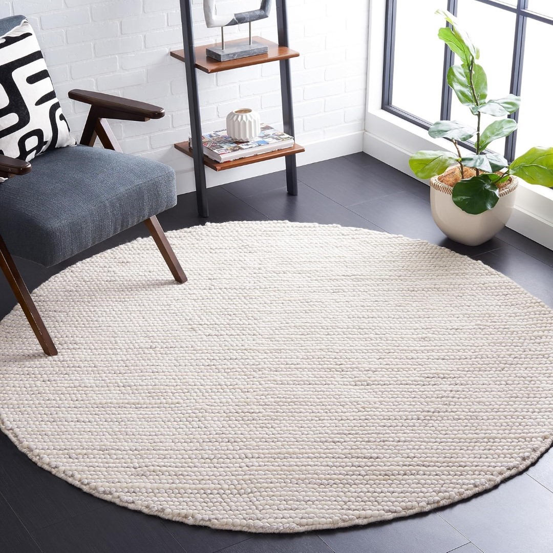 RĘCZNIE TKANY OKRĄGŁY DYWAN WEŁNIANY do salonu sypialni DUŻE KULKI WEŁNY beżowy kremowy SAFAVIEH NATURA 122×122 cm