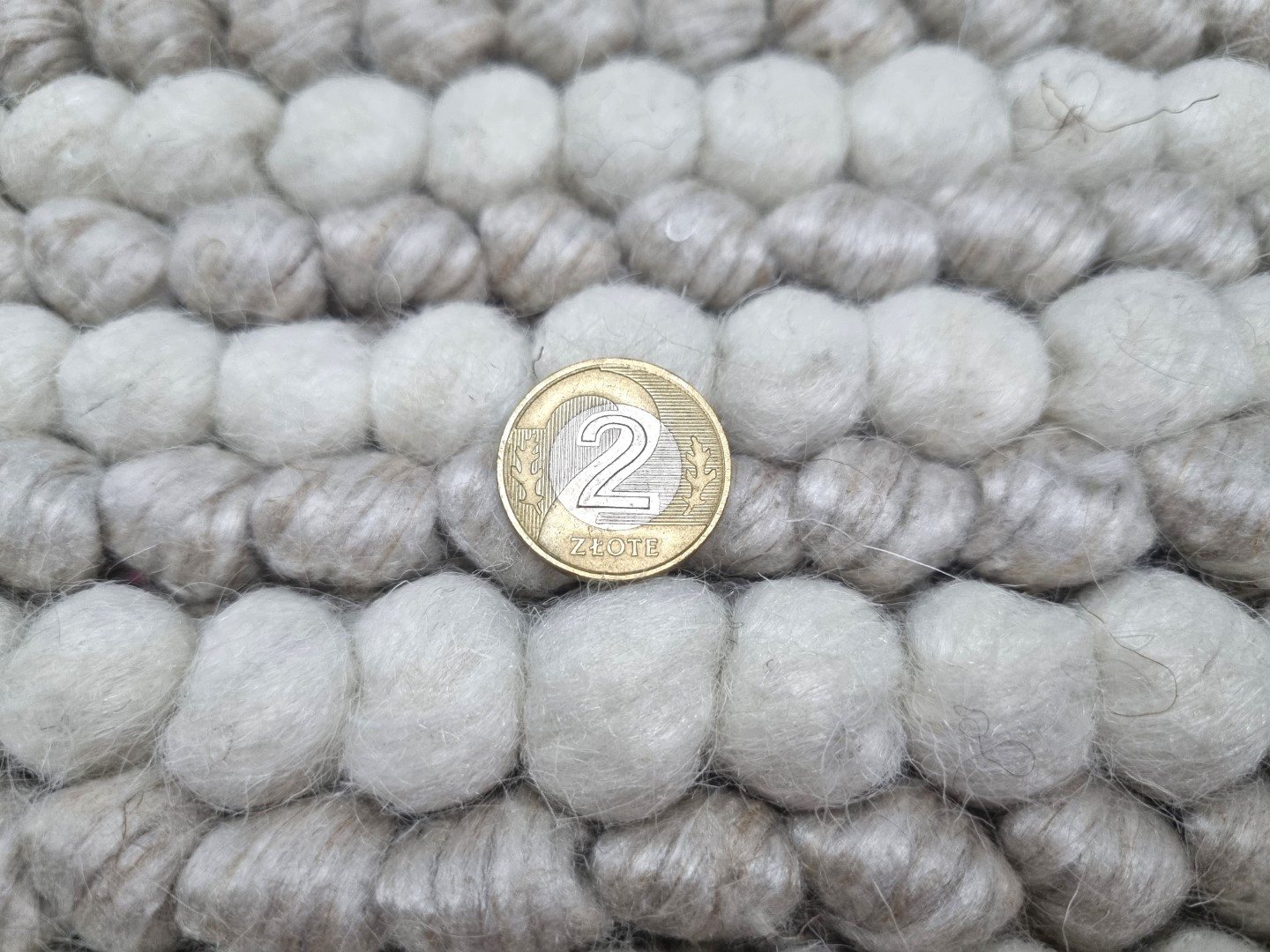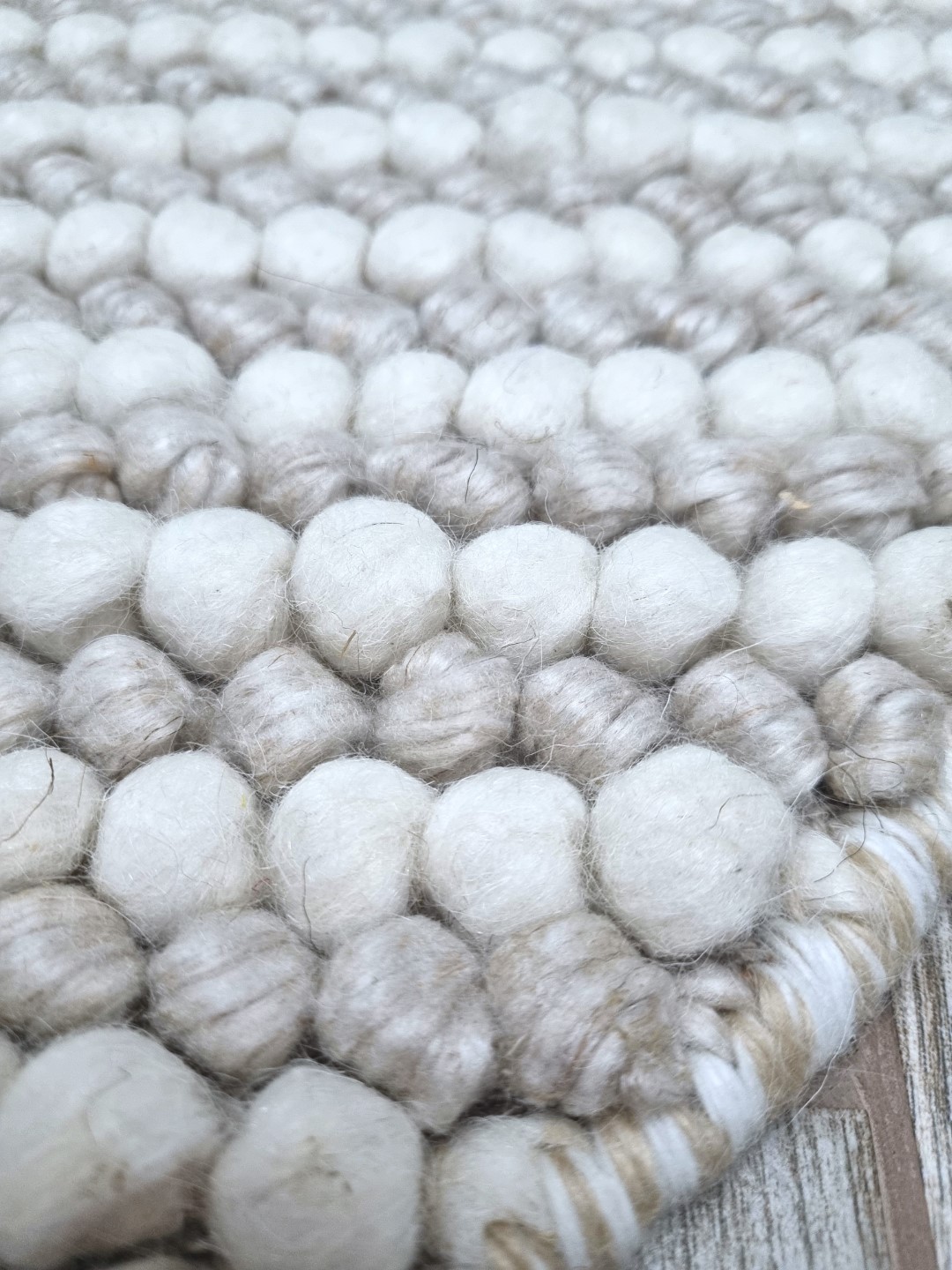 RĘCZNIE TKANY OKRĄGŁY DYWAN WEŁNIANY do salonu sypialni DUŻE KULKI WEŁNY beżowy kremowy SAFAVIEH NATURA 122x122 cm