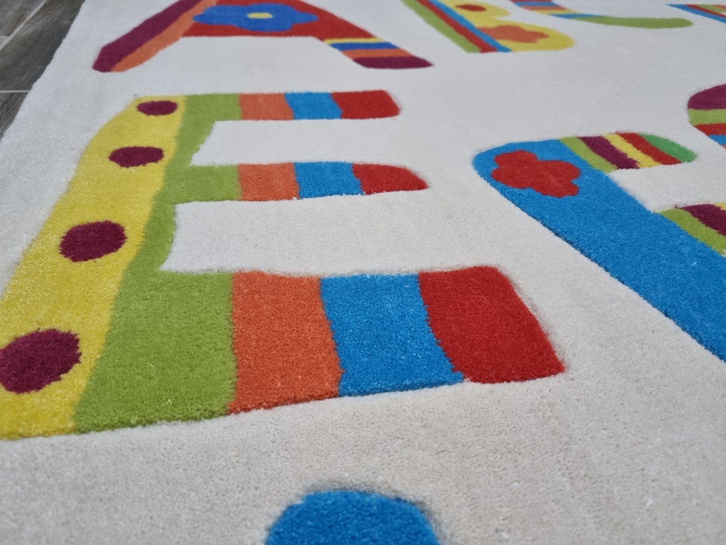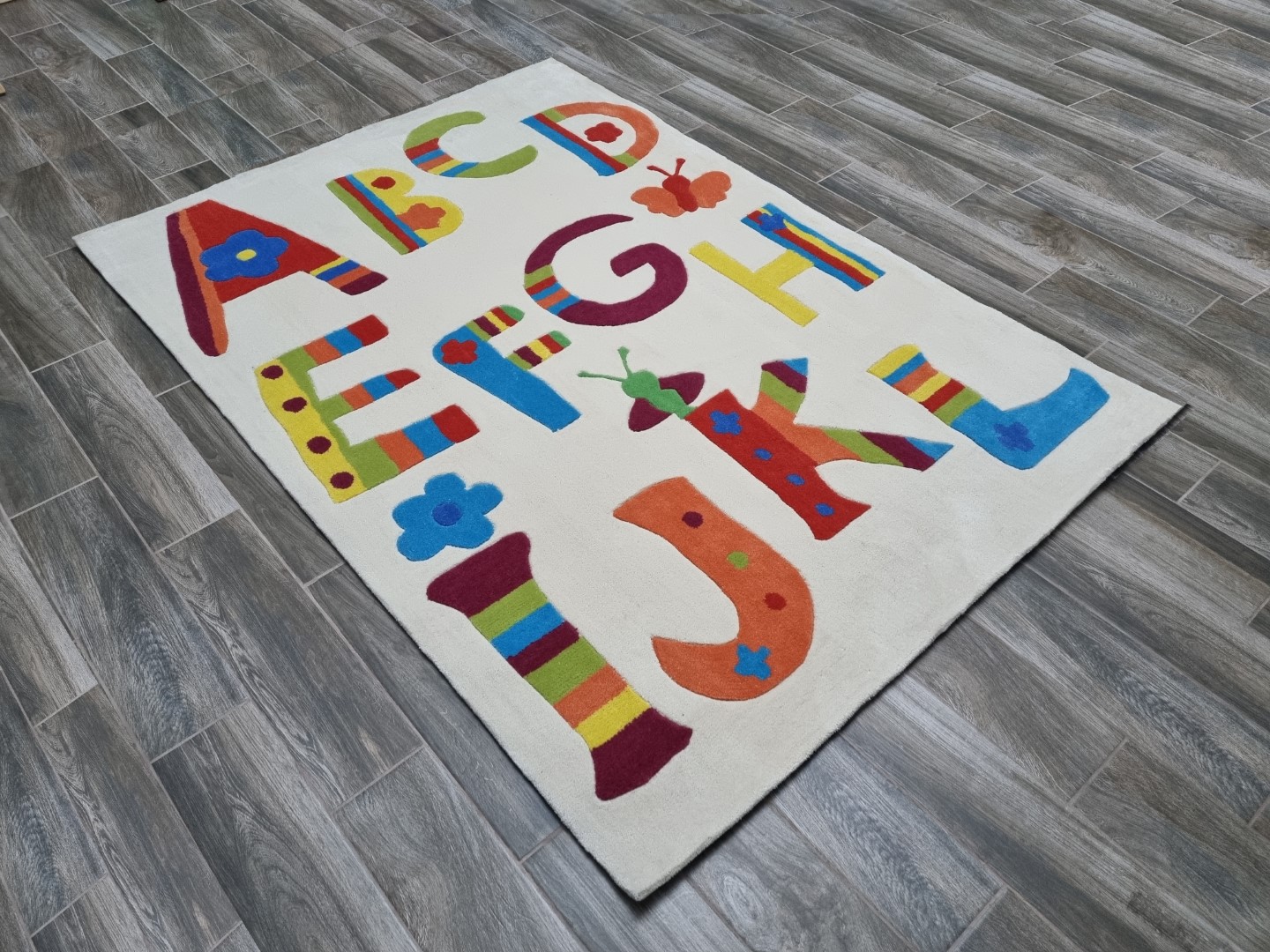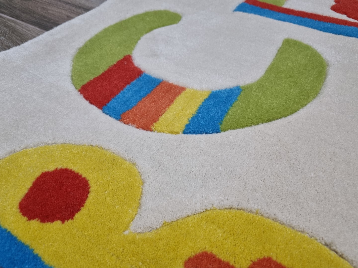 Kolekcja, która rozświetli oczy dzieci. Dywany te nie tylko idealnie dopasowują się do każdego stylu wnętrza, ale także tworzą przyjazne i radosne środowisko dla dzieci. Dywany Alfabet przypadną do gustu szczególnie tym, którzy chcą się uczyć. Dzięki idealnie dobranym elementom i wzajemnemu oddziaływaniu poszczególnych kolorów, dzieci nie będą przytłoczone wizualnym spektaklem, ale też nigdy się nie znudzą. Nie tylko wizualnie, ta kolekcja zapewnia niezwykle wysoki poziom komfortu. Aksamitnie miękkie, krótkie włosie zachęca do przytulania i jest wyjątkowo delikatne dla wrażliwej skóry dzieci. Całości dopełnia wyjątkowo wytrzymała przędza wykonana w 100% z akrylu, odporna na wszelkie nieszczęścia i niezwykle łatwa w czyszczeniu.